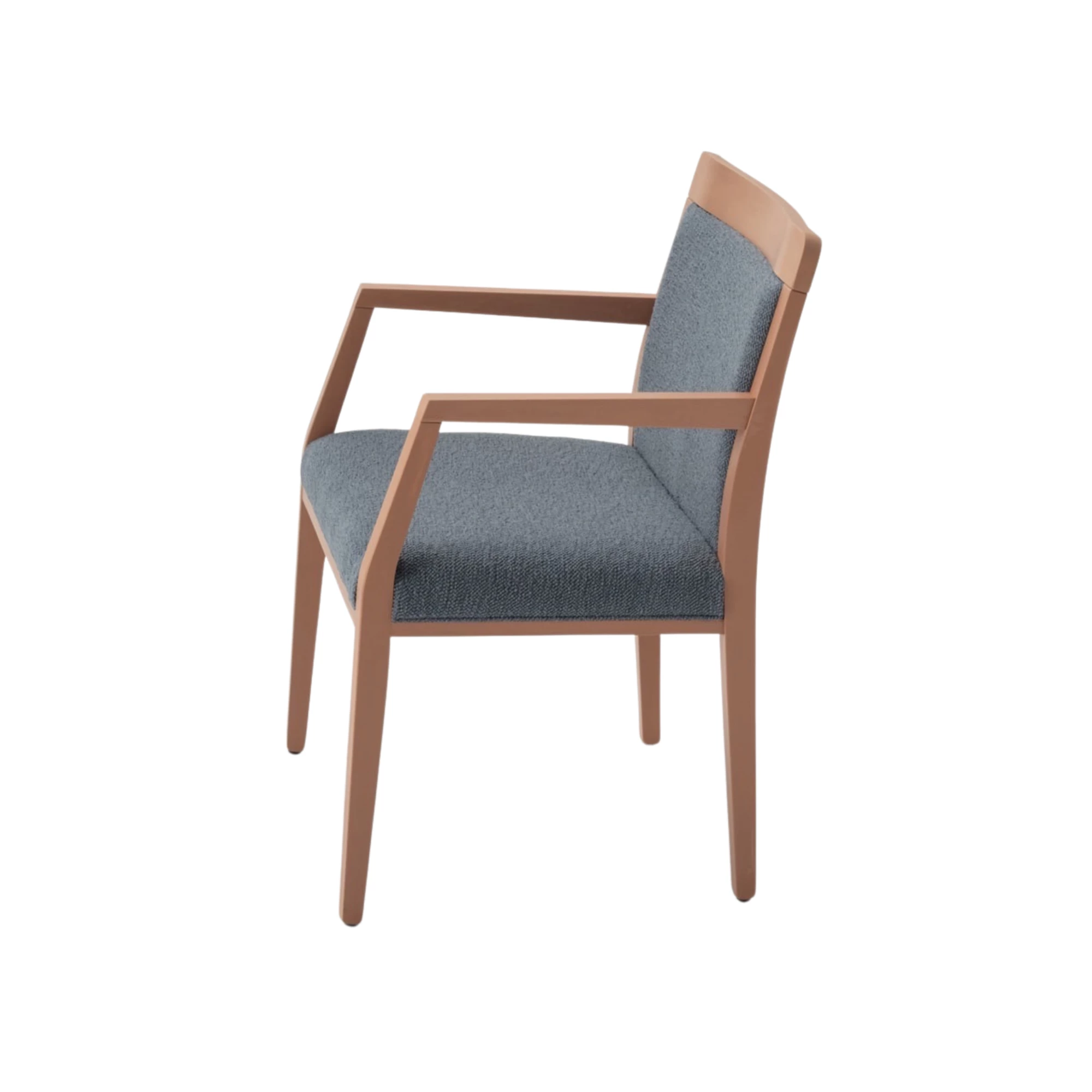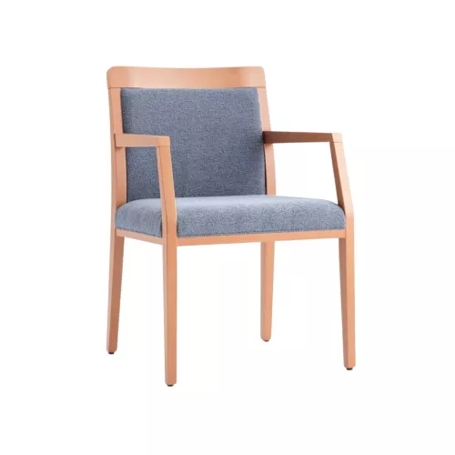 Dubai A este un scaun tapițat cu brațe, cu șezut și spătar confortabil, realizat pe cadru din lemn de fag, lăcuit cu poliuretan și disponibil în mai multe nuanțe. Tapițeria este oferită într-o gamă largă de stofe profesionale sau piele ecologică, rezistentă la uzură. Ideal pentru restaurante sau locații HORECA variate, se potrivește oricărui stil de amenajare.