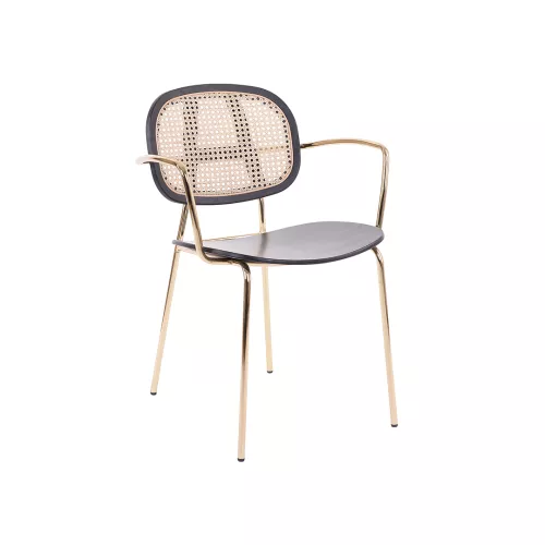Eternity este un scaun modern cu brațe, cadru metalic, șezut furniruit și spătar din ratan. Designul său distinct permite personalizarea culorilor cadrului și lemnului, adaptându-se perfect oricărui spațiu.