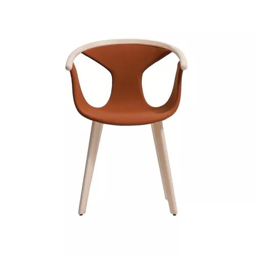 Carcasa este realizată din polipropilenă și căptușită cu spumă poliuretanică flexibilă, ignifugă (densitate 60 kg/m³), acoperită cu material textil. Spătarul curbat din lemn masiv de frasin și picioarele din același lemn completează designul cu un aspect cald și natural.
