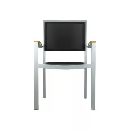 Scaunul George Silver / Black Textilene reprezintă combinația perfectă între durabilitate și stil, fiind ideal pentru terasele restaurantelor, cafenelelor și bistrourilor. Cu un cadru din aluminiu de 22221,8mm, vopsit în câmp electrostatic pentru o durabilitate sporită și rezistență UV, acest scaun este alegerea perfectă pentru exterior. Tapițeria Textilene oferă un confort ridicat, este respirabilă și se usucă rapid, asigurând o experiență plăcută pentru clienți. Cotierele integrate adaugă un plus de relaxare și confort. Construit pentru a fi stivuibil, 24 de scaune pot fi stivuite într-o unitate, fiind ideale pentru economisirea spațiului în timpul perioadelor de inactivitate. Fie că doriți să creați o zonă de luat masa modernă în aer liber sau să actualizați un spațiu existent, scaunul George Silver / Black Textilene combină funcționalitatea, confortul și un design atemporal.