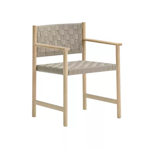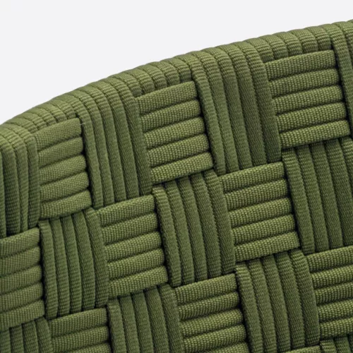 Griante reinterpretează conceptul de șezut împletit printr-un design rafinat, care combină măiestria tradițională cu precizia producției industriale moderne. Acest fotoliu de interior are un cadru din lemn de frasin certificat FSC® C114358, ce îmbină sustenabilitatea cu eleganța naturală. Picioarele cilindrice sunt sculptate cu finețe, iar cotierele ovale se subțiază elegant spre piciorul din spate, creând o linie armonioasă. Cadrul din aluminiu oferă susținere stabilă pentru șezut. Elementul central al designului îl reprezintă șezutul și spătarul împletite manual în Italia, din curele de polipropilenă complet reciclabile, cu o textură tridimensională bogată, care asigură confort și durabilitate. Ușor de demontat și cu un aspect sofisticat, Griante este expresia echilibrului dintre designul atemporal și meșteșugul responsabil.