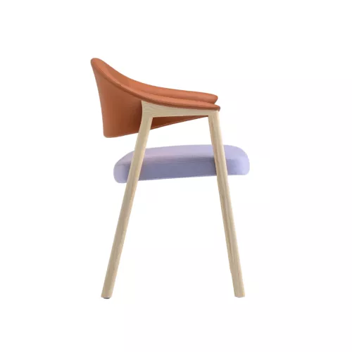Cu linii fluide și o prezență seducătoare, acest scaun aduce un nivel nou de confort în orice spațiu elegant. Structura din lemn de frasin sau nuc american susține un spătar ergonomic din spumă poliuretanică turnată, ce oferă o susținere delicată și învăluitoare. Șezutul generos, realizat din spumă poliuretanică și întins pe benzi elastice, invită la relaxare prelungită. Sprijinit pe picioare ovale din lemn masiv, designul formează o siluetă armonioasă, ideală pentru proiecte de ospitalitate de prestigiu, restaurante rafinate și hoteluri, dar și pentru interioare rezidențiale sofisticate.