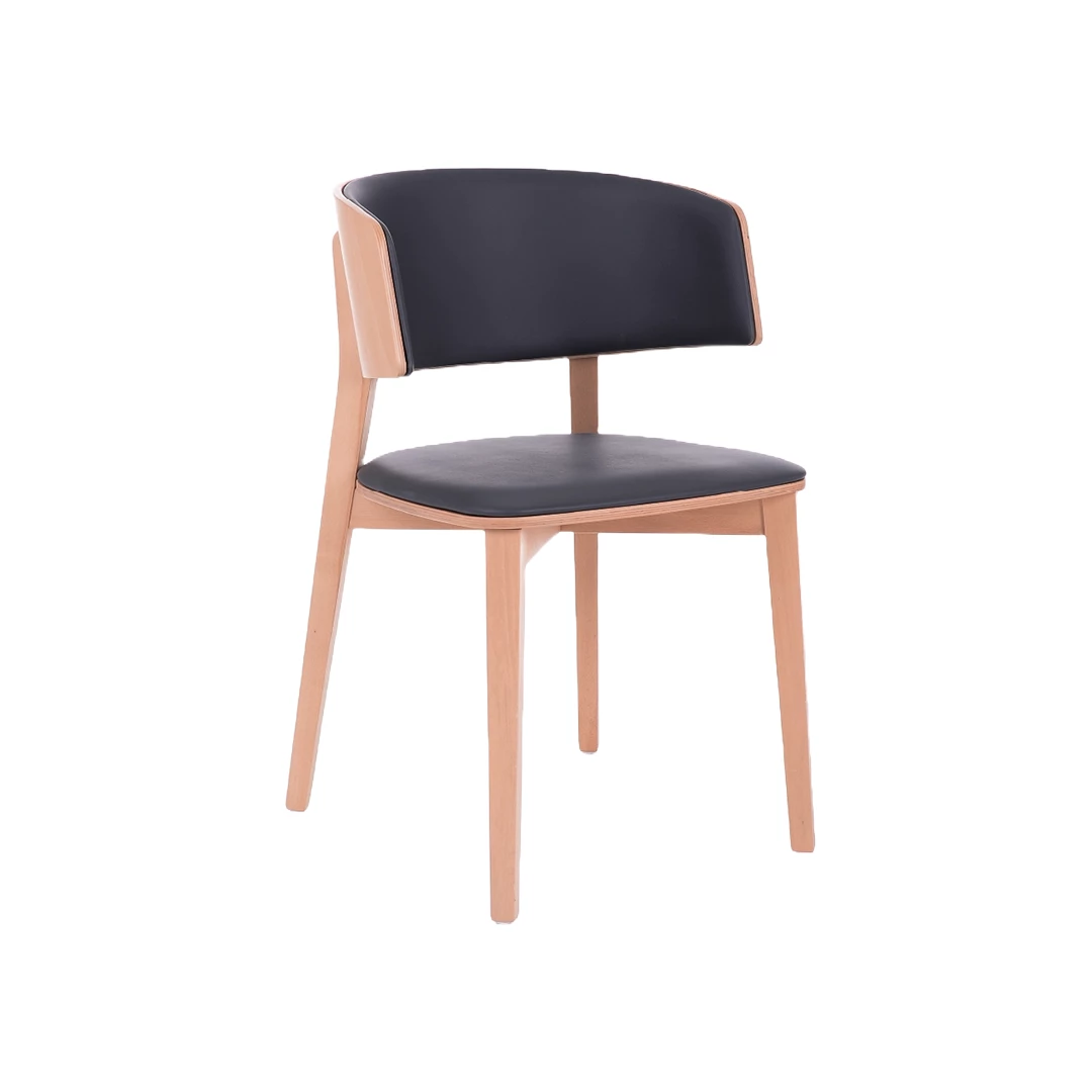Realizat cu un cadru solid din lemn de fag acoperit cu lac poliuretanic protector, acest scaun îmbină eleganța cu rezistența. Spuma de înaltă densitate asigură confort de durată și rezistență ridicată la uzură intensă, fiind ideal pentru medii horeca solicitante. Produsul poate fi complet personalizat prin alegerea unei game variate de materiale profesionale.