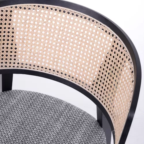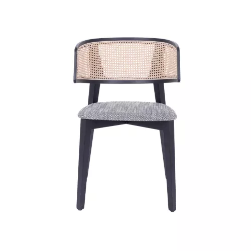 Acest scaun de restaurant cu design elegant îmbină durabilitatea cu un stil atemporal. Realizat din lemn masiv de fag sau stejar cu finisaj natural, scaunul este prevăzut cu un șezut tapițat confortabil și un spătar rafinat din trestie împletită manual. Inspirat din stilul mid-century, acest model aduce un plus de eleganță și funcționalitate oricărui spațiu horeca, fie el restaurant, cafenea sau bistro.