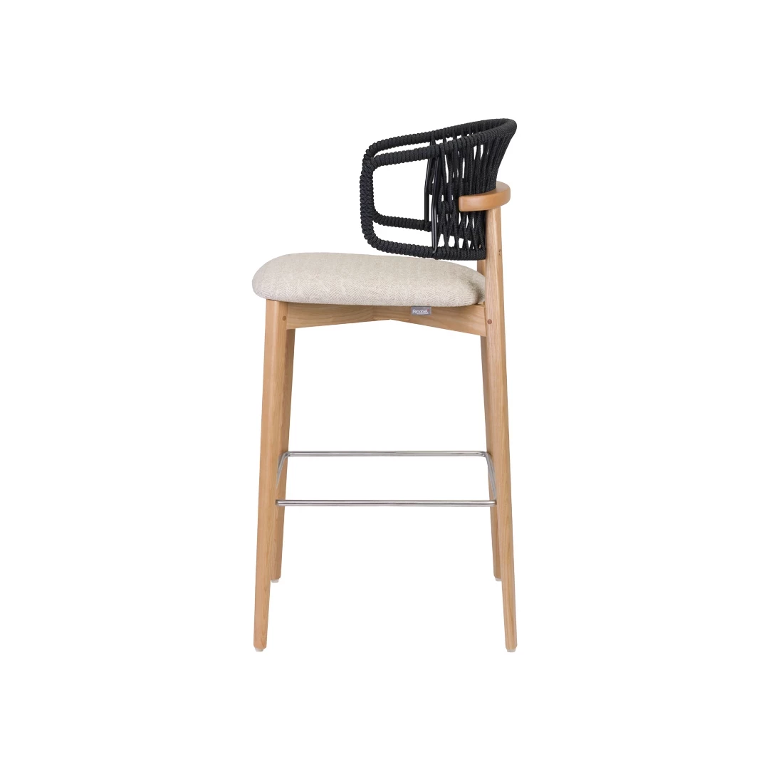 Nebulas BK este un scaun de bar din lemn premium, conceput special pentru mediile horeca. Cadrul său din lemn de frasin este disponibil în diverse finisaje, împreună cu un suport pentru picioare metalic durabil. Șezutul este tapițat cu materiale textile de calitate profesională, în timp ce spătarul din sârmă țesută manual adaugă o textură vizuală unică. Ideal pentru zone de bar elegante, lounge-uri și interioare de tip hotelier.