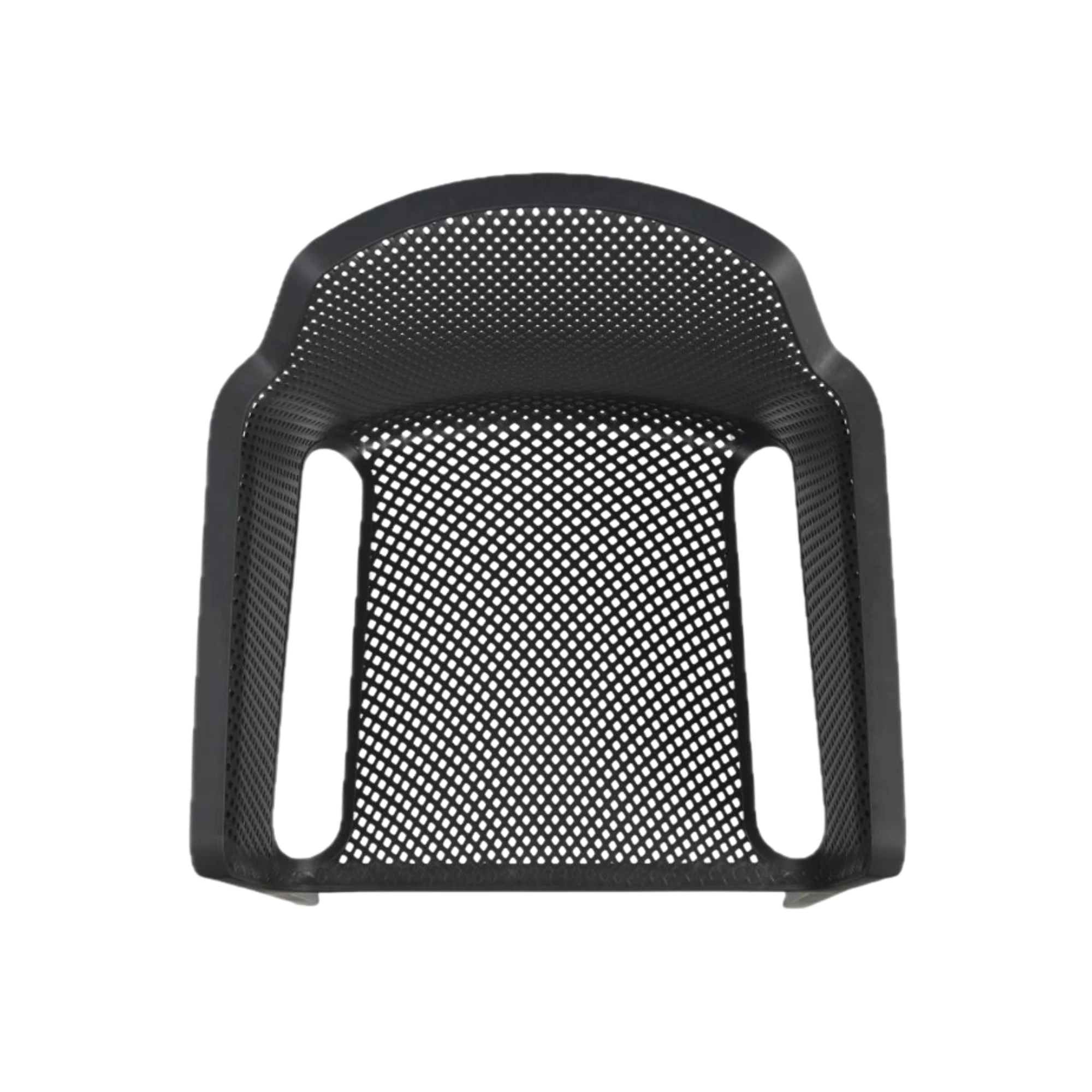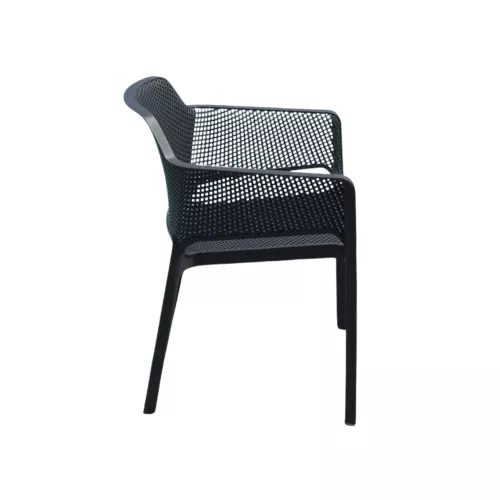 Net este un scaun de exterior modern, destinat locațiilor horeca, cu cadru monobloc din polipropilenă și brațe. Decorat cu un model radial perforat pe toată suprafața șezutului și spătarului. Disponibil în mai multe culori, rezistent la UV și intemperii, cu finisaj mat.