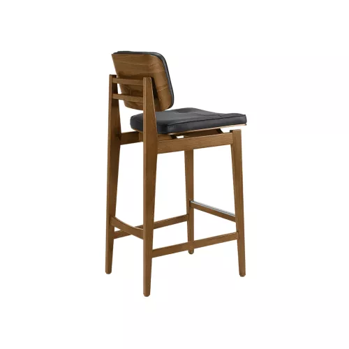 Scaun de bar elegant, realizat din lemn de fag, cu șezut și spătar tapițate pentru un plus de confort. Cadrul este disponibil într-o gamă variată de nuanțe de finisaj, potrivindu-se perfect oricărui concept de amenajare. Conceput special pentru industria Horeca, acest scaun îmbină designul clasic cu rezistența ridicată. Poate fi tapițat în piele ecologică sau într-o gamă largă de materiale textile premium, asigurând durabilitate îndelungată chiar și în condiții de utilizare intensă — o alegere ideală pentru baruri, cafenele și restaurante.