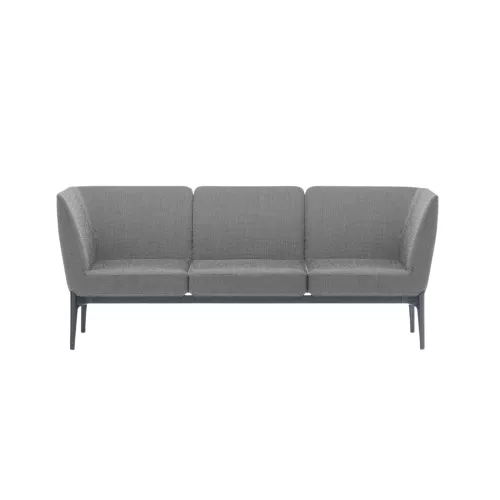 Acest sistem modular de ședere combină elemente liniare, de colț și curbe, împreună cu pufuri asortate, pentru a crea o canapea tapițată extrem de flexibilă, ideală pentru spații contract destinate socializării. Fiecare modul este construit pe un cadru metalic solid, cu spumă poliuretanică de înaltă reziliență și benzi elastice în spătar, oferind confort de durată în medii HORECA cu trafic intens. Picioarele din aluminiu turnat sub presiune, amplasate la extremități, completează aspectul modern și elegant.