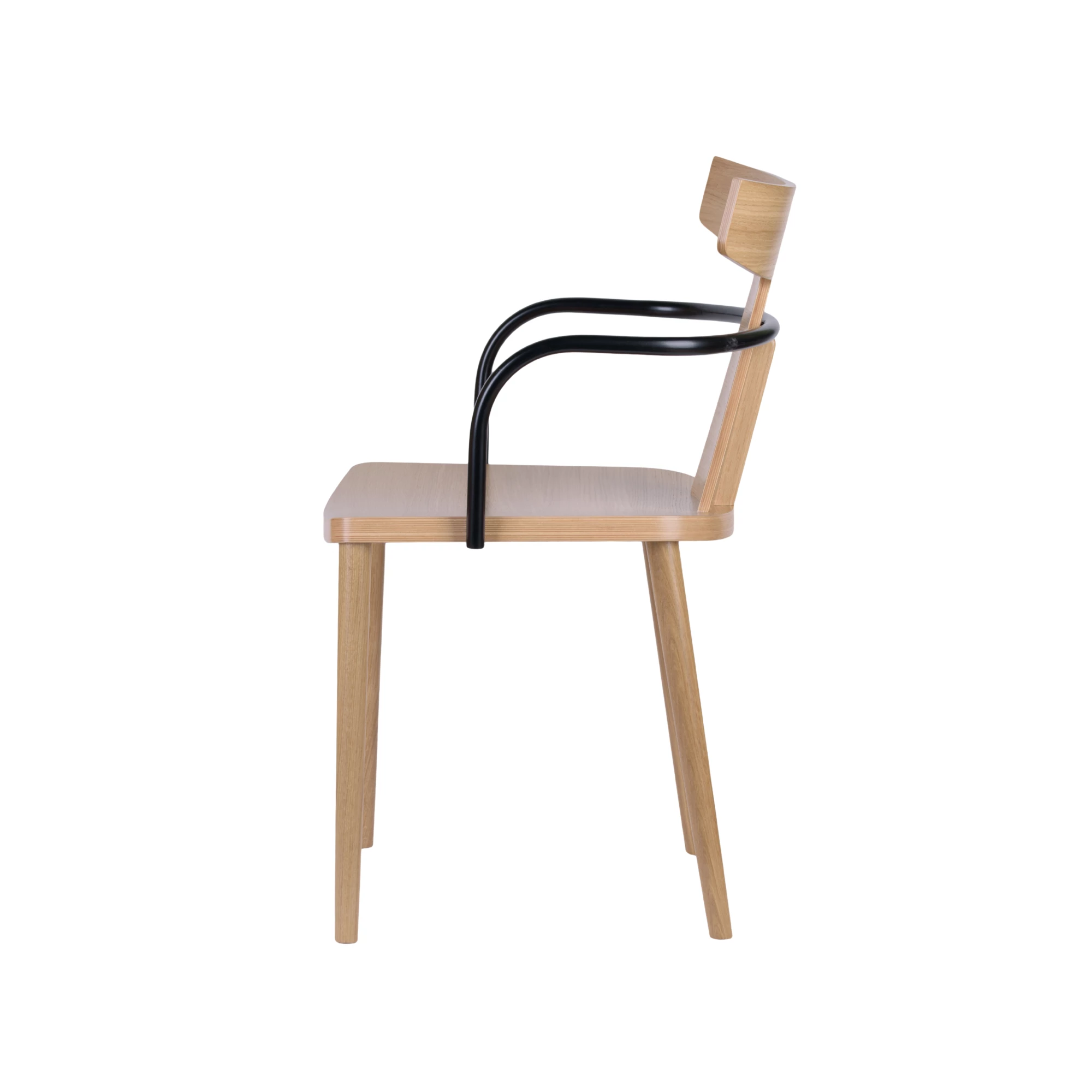T Armchair este un scaun cu brațe elegant și rezistent, realizat din lemn masiv de fag, conceput pentru a oferi confort și stil în restaurante, cafenele, bistrouri și pub-uri. Brațele solide oferă un plus de confort, fiind ideal pentru utilizare îndelungată. Șezutul poate fi furniruit sau tapițat, în funcție de preferințe, iar opțiunile de tapițerie includ o varietate largă de texturi și culori. Acest lucru permite integrarea ușoară în orice stil de amenajare interioară, de la modern la clasic sau rustic. Cu un design rafinat și o construcție robustă, T Armchair este potrivit pentru spații cu trafic intens, fără a face compromisuri în privința esteticii.