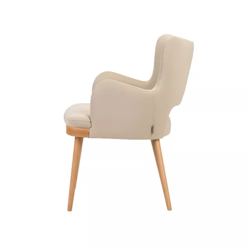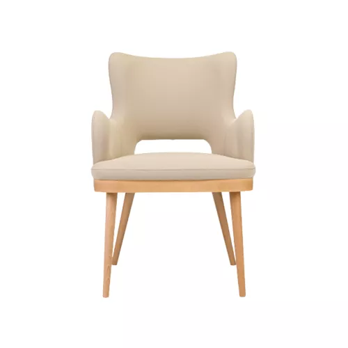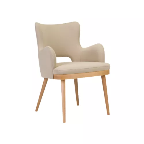 Tavro Hole este un scaun din lemn cu brațe, cu un spătar decupat ce adaugă un detaliu distinctiv. Cadrul din fag, disponibil în diferite finisaje, este completat de un șezut și spătar tapițate. Ideal pentru spațiile horeca, oferă confort, durabilitate și un stil modern cu accente retro.