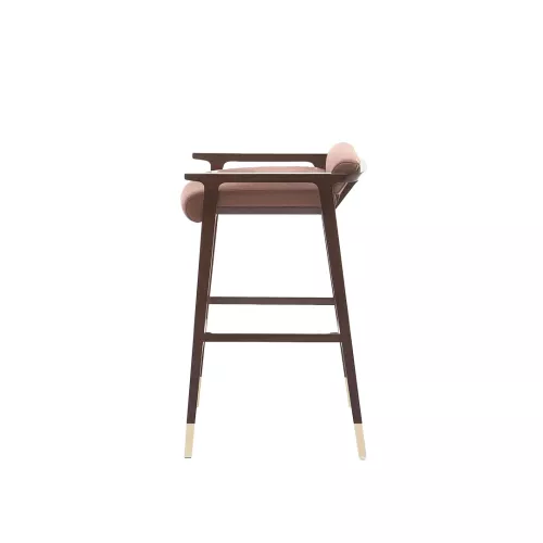 Scaunul de bar din lemn Tenuo BK combină eleganța și rafinamentul, inspirat de maeștrii designului secolului XX. Fabricat din lemn masiv de fag cu capace și suport pentru picioare din oțel inoxidabil anodizat cu alamă, are un șezut și spătar tapițate, disponibile într-o gamă largă de țesături profesionale. Perfect pentru hoteluri, baruri și spații horeca.