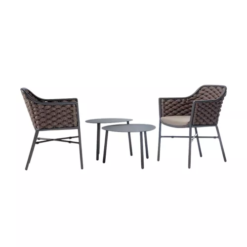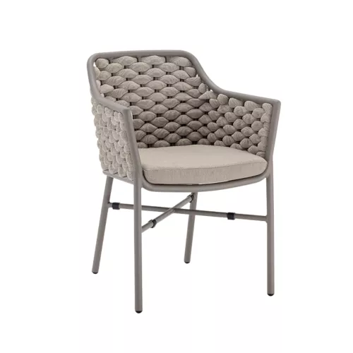 Tosca este un fotoliu de exterior elegant, ideal pentru terasele horeca moderne. Construit pe un cadru rezistent din aluminiu, este îmbrăcat în textilenă și frânghie din cauciuc, oferind confort și durabilitate. Se poate stivui și include perne din textilenă. Disponibil în mai multe variante pentru o adaptare ușoară în orice spațiu exterior.