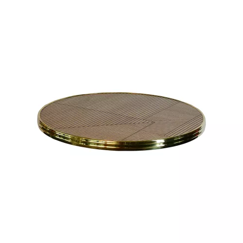 Blatul Werzalit Bistro cu inel este ideal pentru spațiile horeca, interioare sau exterioare. Prevăzut cu margine din alamă, este rezistent la raze UV și căldură, durabil, rezistent la șocuri și ușor de curățat. Disponibil în mai multe dimensiuni și decoruri.