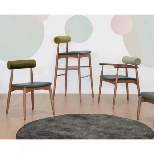 Yoto S este un scaun elegant pentru restaurante, conceput pentru interior, care adaugă o atmosferă sofisticată în orice spațiu de luat masa. Fabricat cu un cadru solid din lemn de fag, asigură durabilitate și confort pe termen lung. Șezutul și spătarul sunt tapițate cu două tipuri de materiale diferite, oferind o combinație unică de texturi și culori. Această caracteristică personalizabilă permite o notă unică, ușor de adaptat oricărui decor. Indiferent dacă este folosit într-un restaurant de lux, într-o cafenea sau într-un hotel, scaunul Yoto S adaugă eleganță rafinată și un aer modern, fiind alegerea ideală pentru designeri care doresc versatilitate și stil.